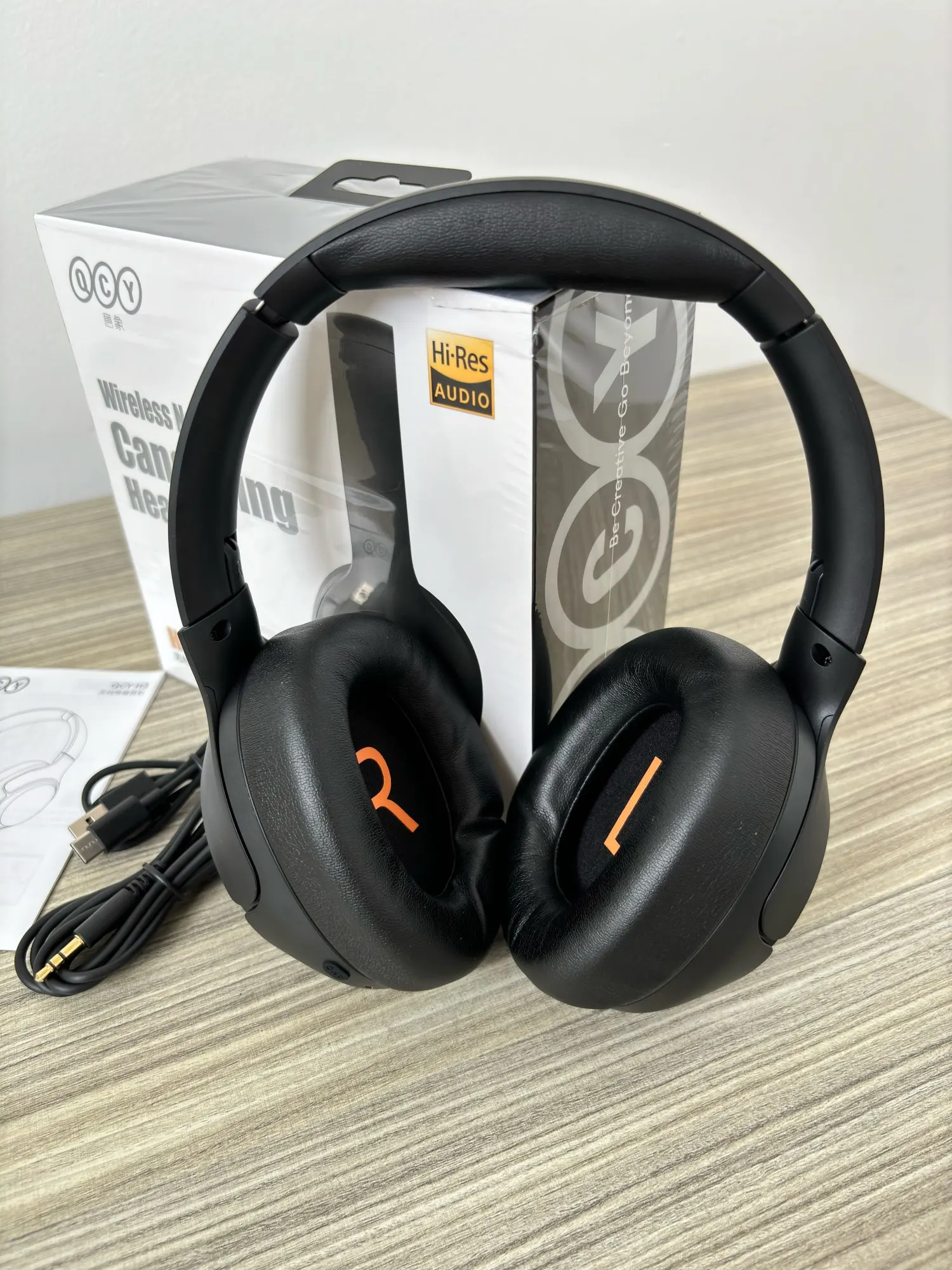 QCY H3 ANC Wireless Headphones feature 43dB Hybrid Active Noise Cancellation, Hi-Res Audio, Bluetooth 5.4, 60-hour battery life (ANC off), dual-device connection, wireless/wired mode, detachable cable, and full customization via the QCY App.